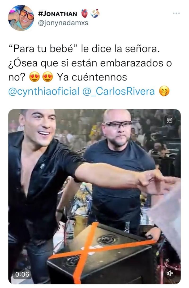 El embarazo de Cynthia Rodríguez todavía es un rumor, sin embargo, una fanática de Carlos Rivera le dio un tierno regalo durante su show en vivo en Tamaulipas, a cambio recibió un beso de agradecimiento de Carlos Rivera.