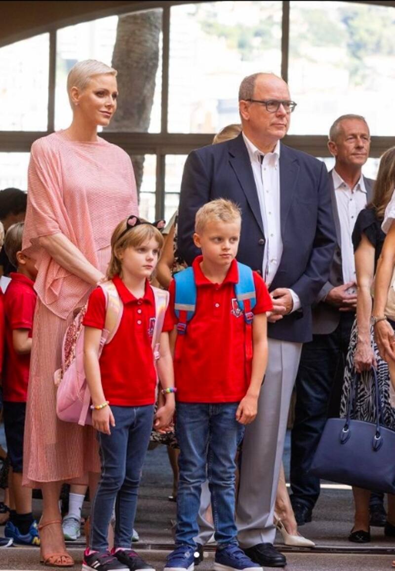 El Palacio de Mónaco ha publicado fotografías de la llegada de los mellizos a su colegio para iniciar las clases después de la pandemia por covid-19. Han dejado ver los colores del uniforme que consisten en una camiseta polo color roja con el logo de la escuela, ambos usando jeans y tenis obscuros. En cuanto a sus mochilas, el príncipe eligió una color azul de Mario Bros y la princesa rosa con diamantina.