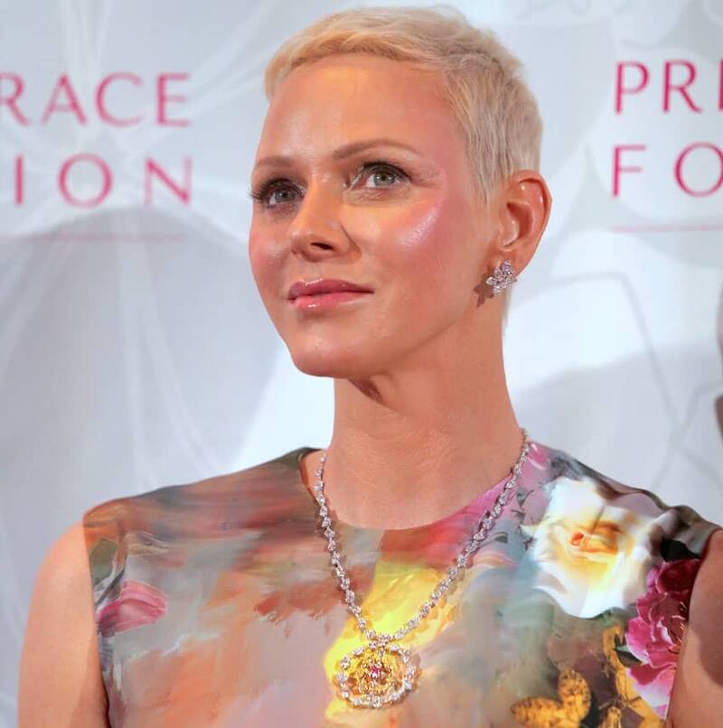 Pero había un detalle de su estilismo que centraba toda su atención. El collar que lució tiene una historia muy particular, pues tiene un diamante en el centro con el que Charlène rindió un claro homenaje a Grace Kelly, su suegra, se trata de una piedra preciosa extraída de una mina en Argyle, en Australia.