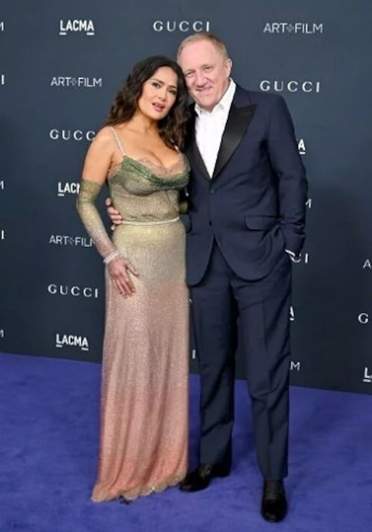 Sin duda, el elemento que se robó la atención fue el pronunciado escote de la mexicana, que estuvo cubierto con un encaje igual de brillante que el resto del diseño. La actriz mexicana no dejó pasar la oportunidad de posar junto a su esposo, el empresario multimillonario, Francois Pinault.