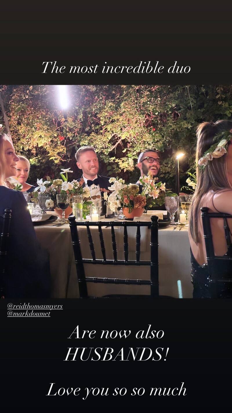 Y sus historias complementaron la información, pues compartió fotos y videos de la fiesta por la boda de Mark Doumet y Reid Thomas Myers, quienes tuvieron un festejo tradicional a lo grande en San Miguel.