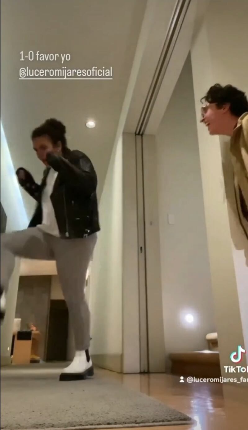 El hombre que la asustó lleva un marcador en el video, compartido desde una cuenta fan de la hija de Lucero y Mijares en TikTok, en el que dice “1-0 favor yo”. Así que Lucerito tendrá que estar alerta a donde quiera que vaya, pues sin duda alguna, buscarán incrementar el marcador.