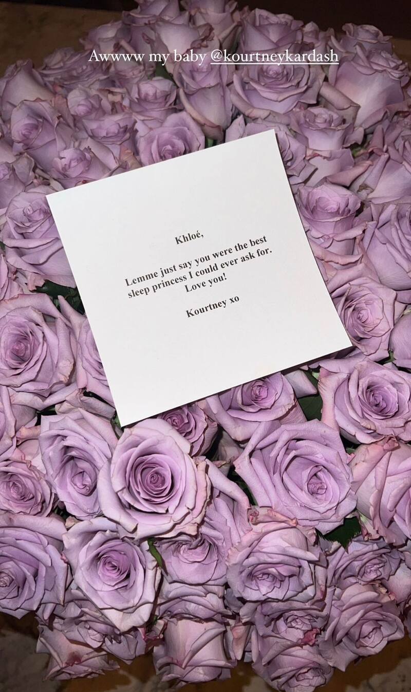 “Khloé, déjame solo decirte que eres la mejor princesa dormida que jamás pude haber pedido. ¡Te amo!”, se lee en la tarjeta que mandó Kourtney Kardashian.