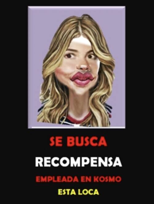 "Último minuto. Se busca recompensa, empleada de Kosmos está loca", es lo que dice la caricatura. Esta fue la imagen realizada por los colaboradores de Kosmos: