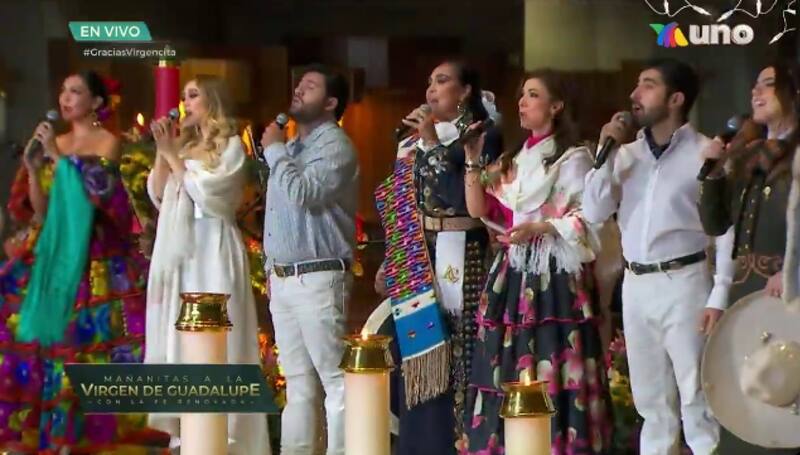 Y en punto de la medianoche, todo el elenco cantó "Las mañanitas", momento del inicio de la misa solemne en la Basílica de Guadalupe. El sacerdote Aguilar dio un dato curioso: que este evento empezó con Pedro Infante y un mariachi pequeño.