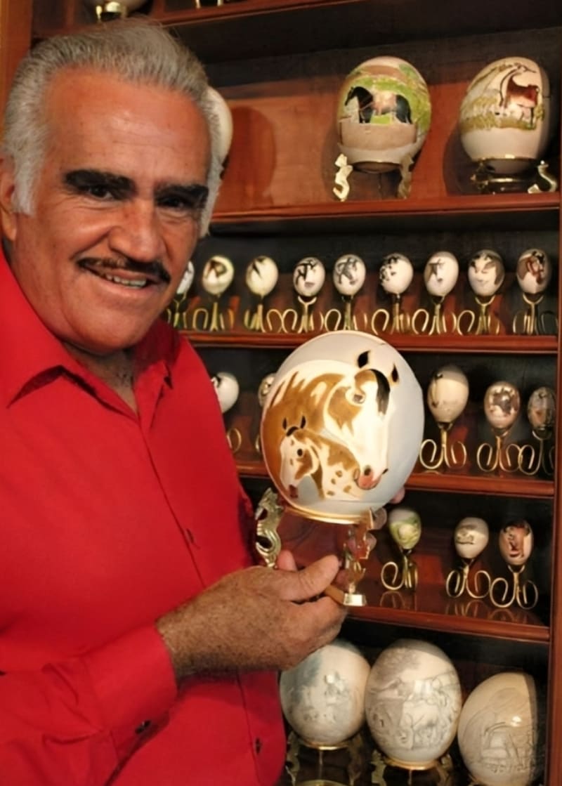 En una oportunidad que Vicente Fernández abrió las puertas de su rancho y dio una entrevista exclusiva, contó muchas curiosidades acerca de su vida, sus gustos personales y entre ellos, mostró la gran colección de huevos que convirtió en obras de arte.