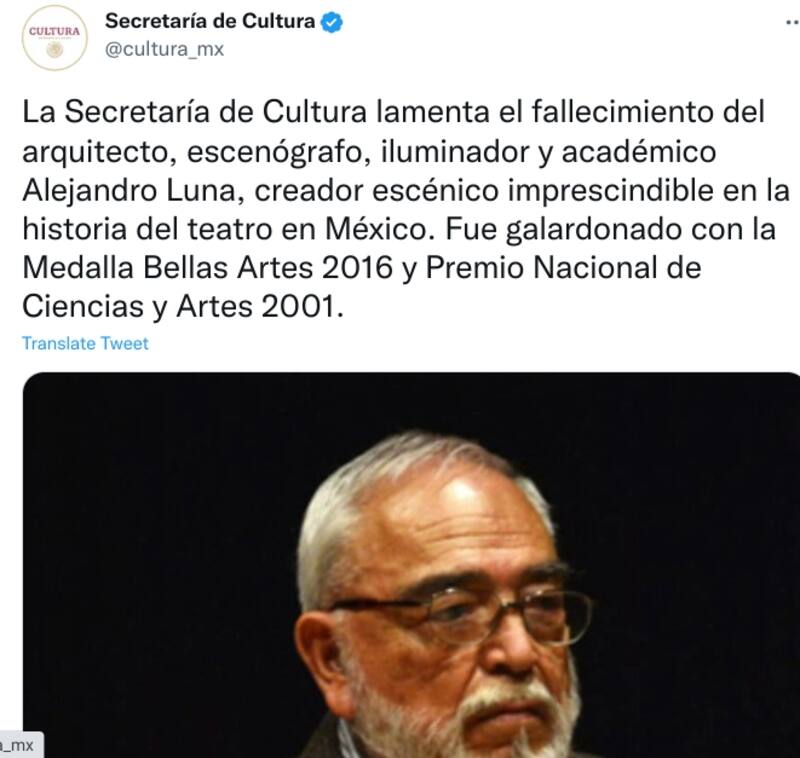 Sin embargo, no se señaló la causa de muerte del reconocido arquitecto, escenógrafo y catedrático mexicano que tenía 83 años de edad.