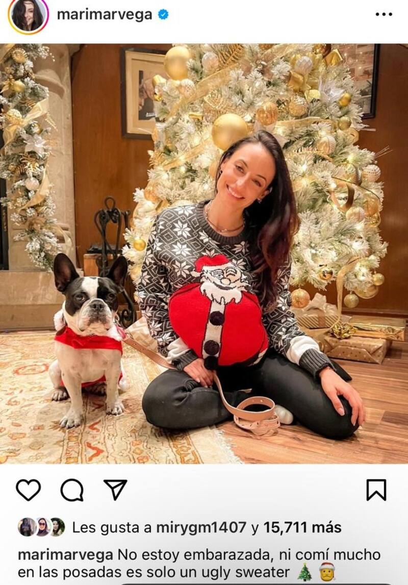 "No estoy embarazada ni comí mucho en las posadas es solo un ugly sweater", escribió la actriz en su cuenta de Instagram.