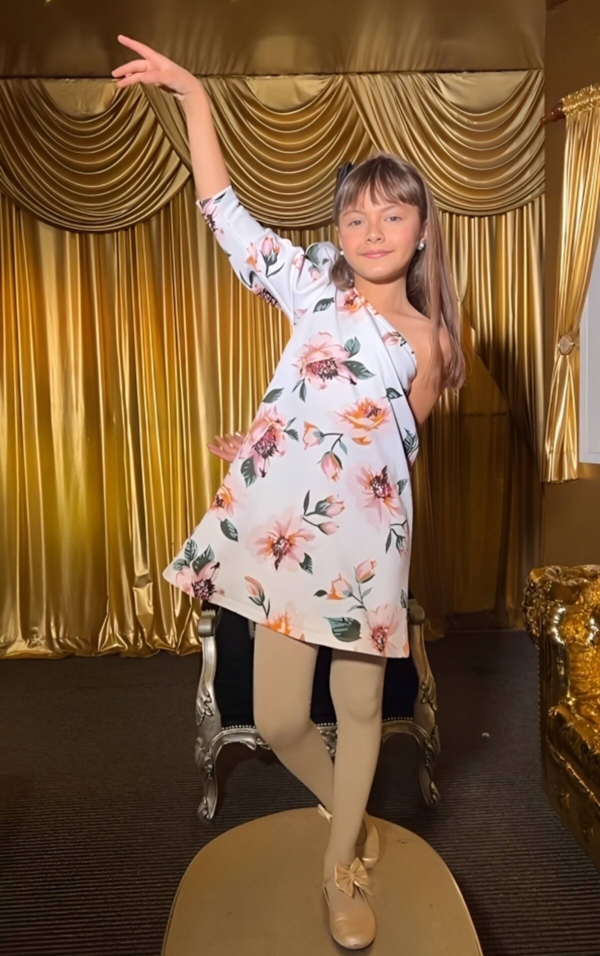 En el breve clip que publicó en su cuenta de Instagram, se ve a la pequeña hija de Cristian Castro con un vestido blanco con estampado de flores y de un hombro descubierto, bailando el tema del reto viral sobre una mesa.