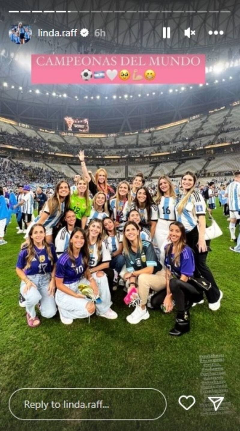 La encargada de compartir la imagen en sus redes sociales fue la esposa del Papu Gómez, Linda Raff, quien también subió fotos con el jugador besando la Copa del Mundo y celebrando con sus hijos. Además, celebró poder vivir este día tan especial a su lado.