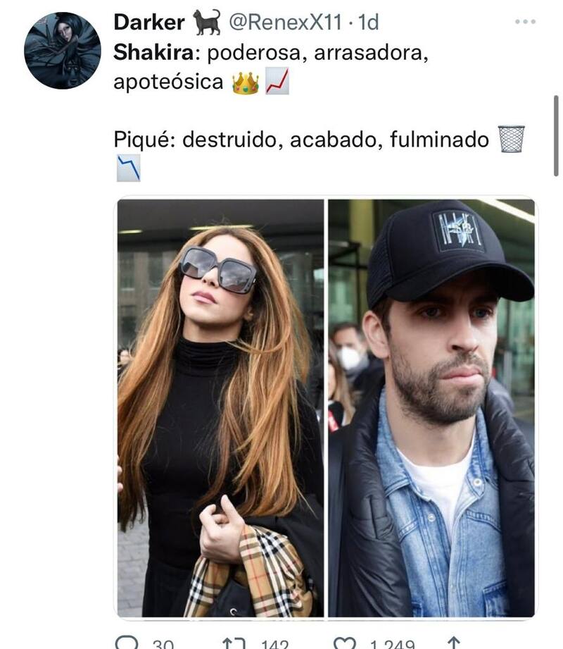 "Comparte está Shakira empoderada para que siempre consigas lo que te propongas", "Shakira yendo a firmar su libertad", "Piqué: destruido, acabado, fumigado", son algunos de los mensajes que leen en Twitter.