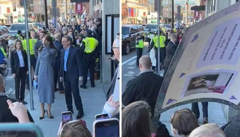 Los admiradores de la princesa se alinearon en la calle a ambos lados de la visita a la Universidad de Harvard, aplaudiendo a Kate cuando entró al edificio.