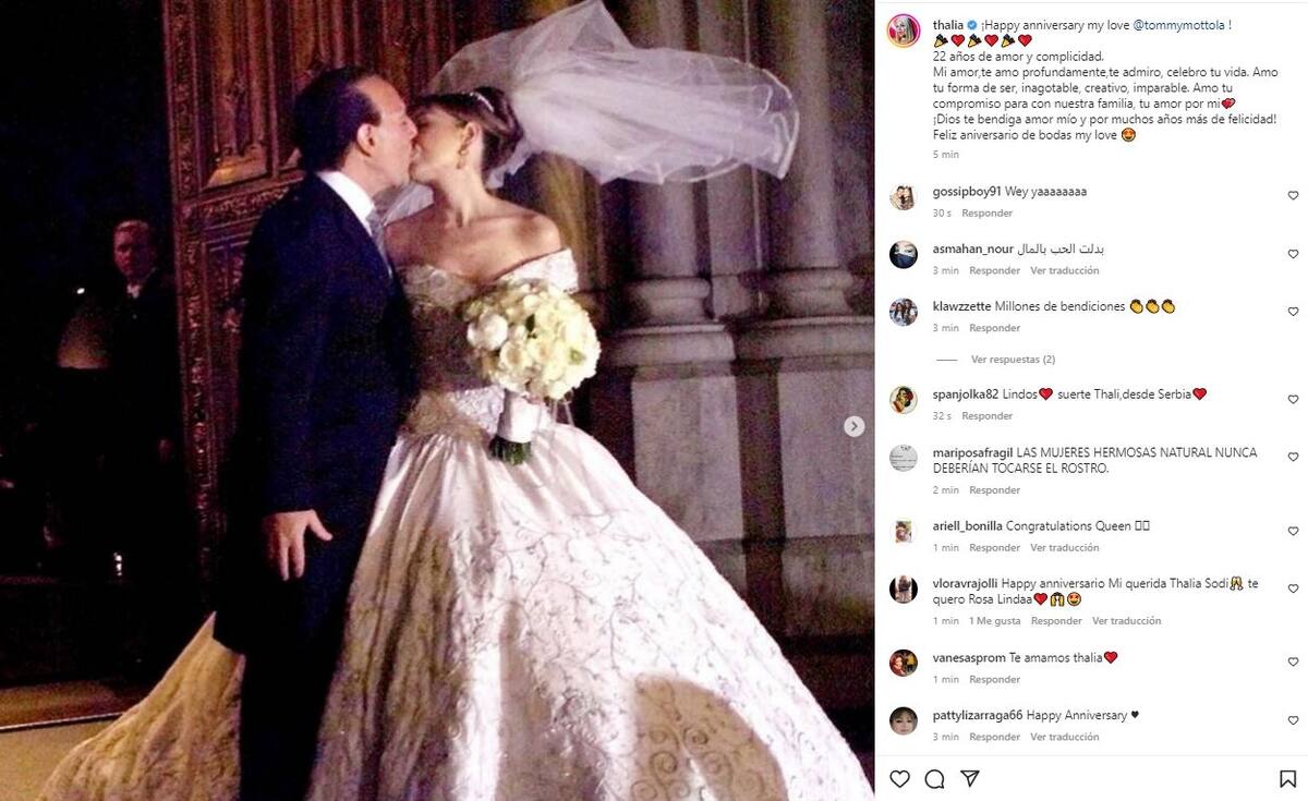 Thalía está de fiesta este 2 de diciembre pues celebra en grande su aniversario número 22 con el empresario Tommy Mottola. Y como ya es costumbre, decidió compartir en redes sociales fotografías inéditas del paso de los años que ha vivido junto a su esposo.