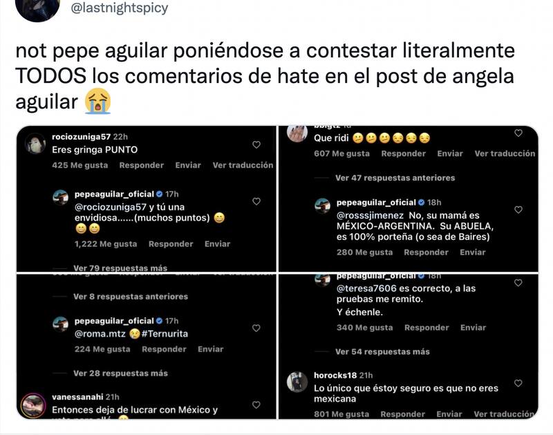 "Pena ajena esta publicación pero más pena ajena Pepe Aguilar peleándose con la gente en la cuenta de su hija", comentaron algunos internautas más.