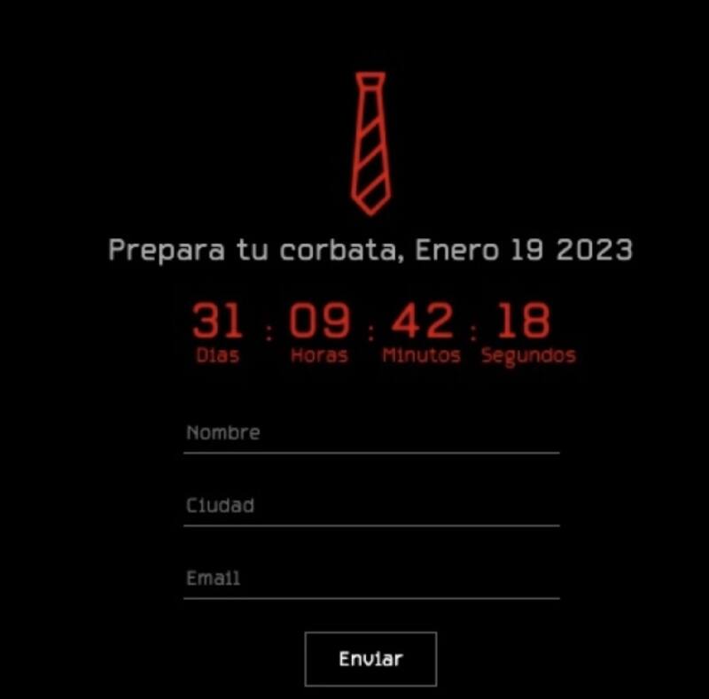 Al final del clip aparece el link www.soyrebelde.world en el que al entrar se puede leer: "Prepara tu corbata, enero 19 2023".
