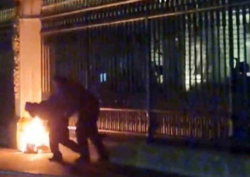 La Policía Metropolitana de Londres mencionó en su comunicado que: "Poco después de las 22.08 horas del martes 20 de diciembre, un hombre de 30 años fue arrestado bajo sospecha de causar daños criminales después de que viera un pequeño incendio cerca de las puertas del Palacio de Buckingham".