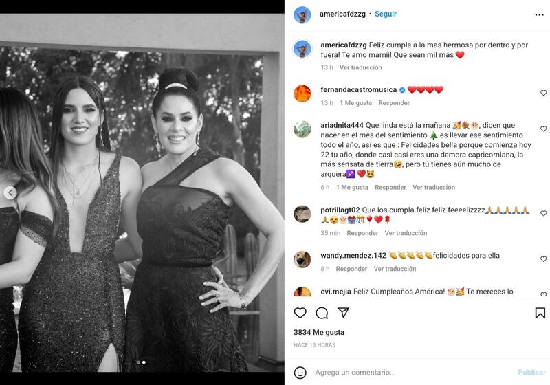 América Fernández, por su parte, celebró esta fecha expresándole su amor a su mamá, a quien envió un mensaje a través de su cuenta de Instagram. "Feliz cumple a la más hermosa por dentro y por fuera. Te amo mami. Que sean mil más", dijo la joven. Ella también acompañó sus palabras con imágenes de América Guinart del día de la boda de su hermano Alex, instantáneas en las que luce guapísima junto a sus hijas.