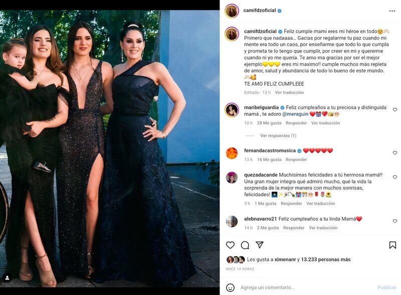 A su vez, Camila Fernández fue una de las primeras en expresarle sus buenos deseos y a través de sus redes sociales le dedicó unas palabras en las que destacó lo importante que es para ella contar con su apoyo incondicional.