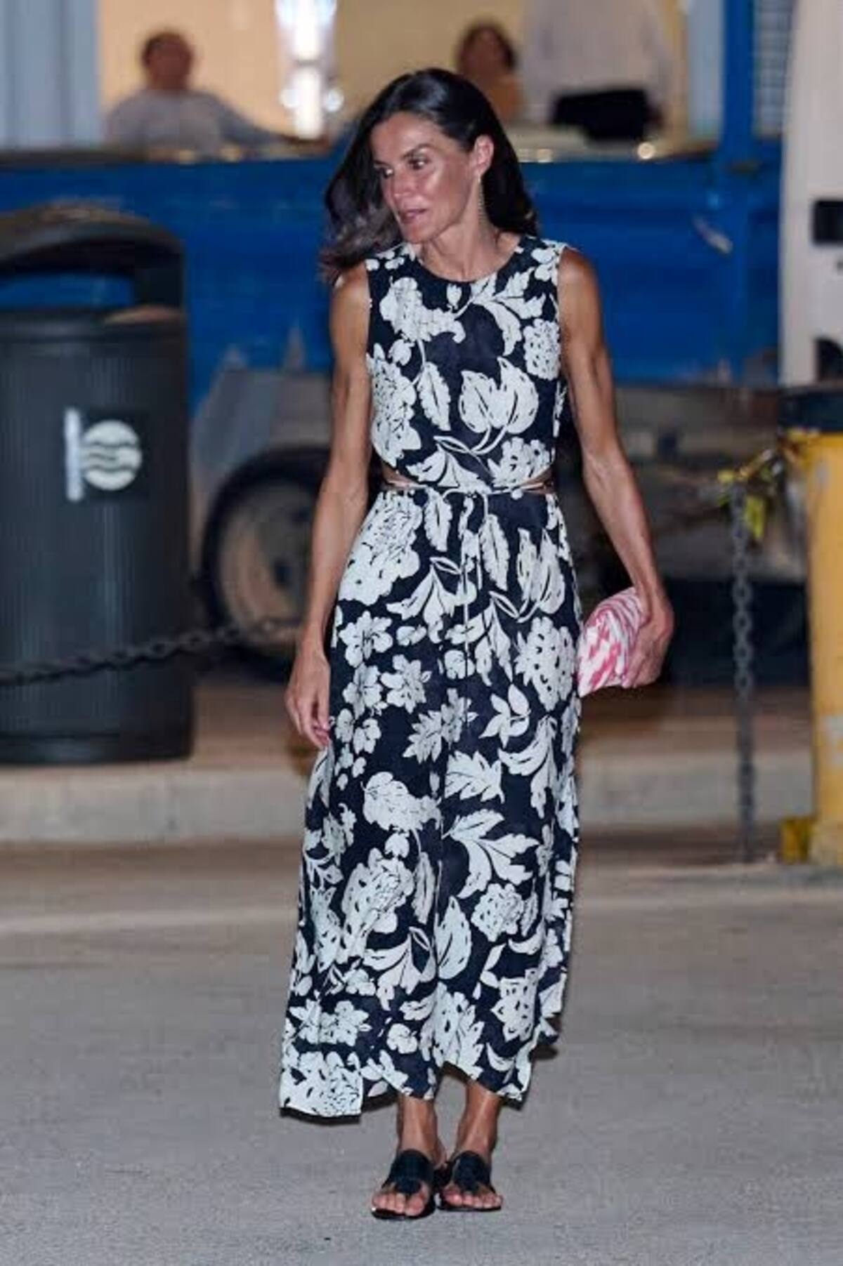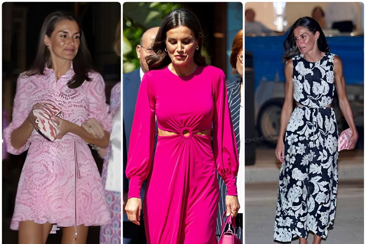 La reina acaparó todas las miradas, al apostar por un minivestido de Zara con el que lució más que nunca sus piernas estilizadas. Se trata de un vestido de corte camisero y manga larga, con estampado blanco y rosa. El look lo completó con unas alpargatas rosas de ante Clooui, una cartera de mano de la marca Feel Mallorca, con pendientes de aro dorados de talla mediana y su anillo de Karen Hallam.