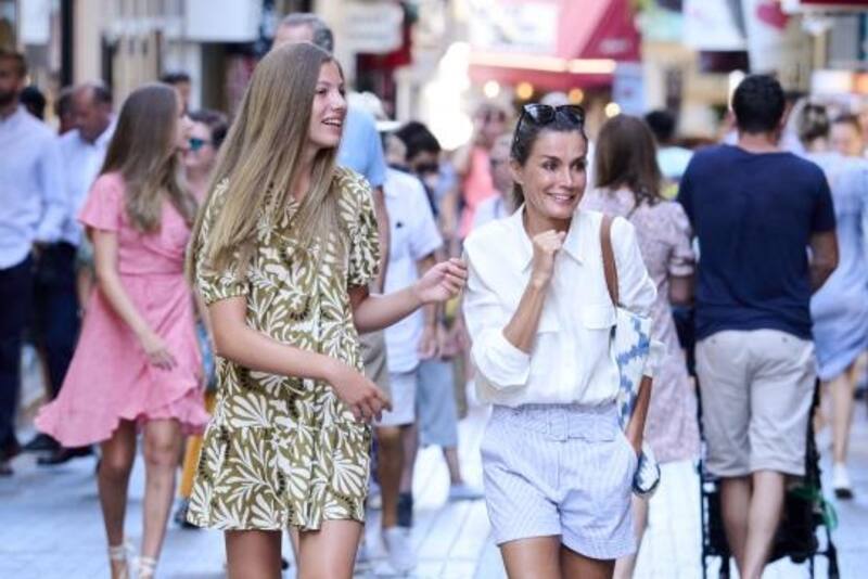 En agosto, durante las vacaciones de la familia real por Mallorca, Letizia regaló una de las postales que más dio de qué hablar en el año. Durante un paseo con su esposo, el rey Felipe, sus hijas, la princesa Leonor y la infanta Sofía, volvió a sorprender con su look de shorts y un minivestido.