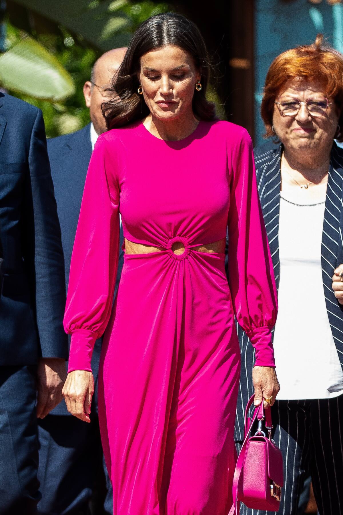 Letizia sorprendió en mayo pasado uniéndose a la tendencia "cut out", con lo que exploró su faceta más fashion. De largo midi y mangas abullonadas, la reina lució un vestido rosa fucsia con aberturas en los costados y un anillo en el medio que dejaron al descubierto su abdomen bien trabajado.