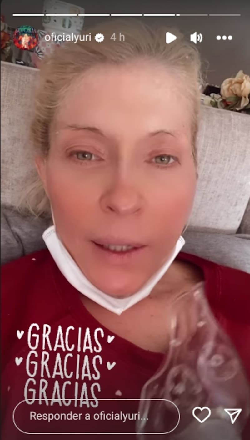 Mientras hacía nebulizaciones para cuidar sus pulmones, Yuri grabó un video en el que dijo: "Quiero darles buenas noticias, que me siento muy bien para ser el segundo día, ya no tengo flema, ya no me arde la garganta. No tuve tos, no tuve temperatura. A todos mis fans, mis amigos, mi familia, gracias".