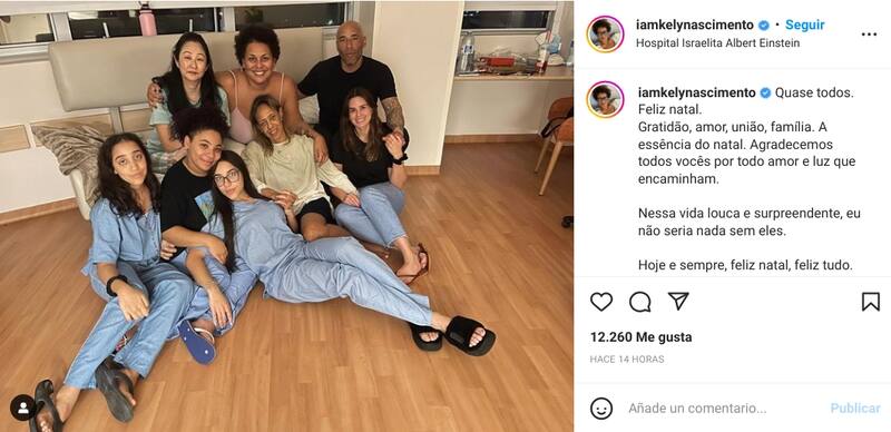Kely Nascimento, la hija de Edson Arantes do Nascimento "Pelé", publicó una fotografía junto con su familia desde el Hospital Israelita Albert Einstein, donde se encuentra hospitalizada la estrella del futbol mundial, a propósito de la Navidad.