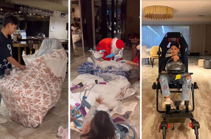Segundos después se puede ver el momento en el que los hijos del futbolista abren sus regalos navideños con ayuda de sus amorosos padres.