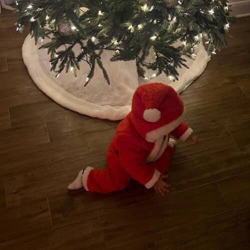Esta vez para celebrar la llegada de la Navidad, Maralee Nichols compartió un par de fotografías en las que, aún sin dejar ver su cara, sale luciendo un traje de Santa Claus. Además el pequeño de un año aparece en una de las imágenes subiendo a su lujoso carro de juguete.
