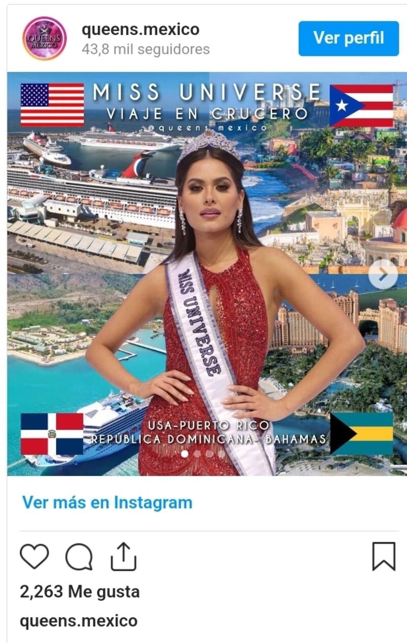 "Estaré en el crucero carnaval por razones de trabajo con la organización Miss Universo, pero mi corazón está con mis personas amadas ahora mismo", finalizó en su mensaje.