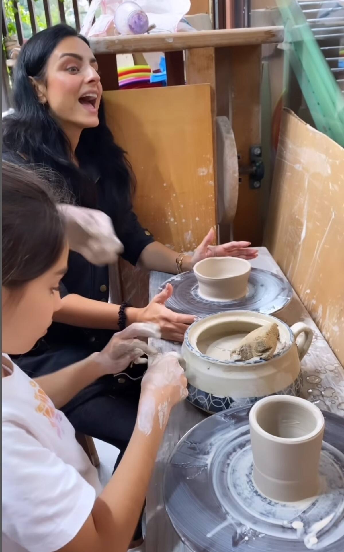 De igual manera, se ve que en el taller que tomó no está sola, pues también Aislinn Derbez se encuentra moldeando su propia pieza. Pero a diferencia de Aitana, se ve que le costó más trabajo moldear su creación.
