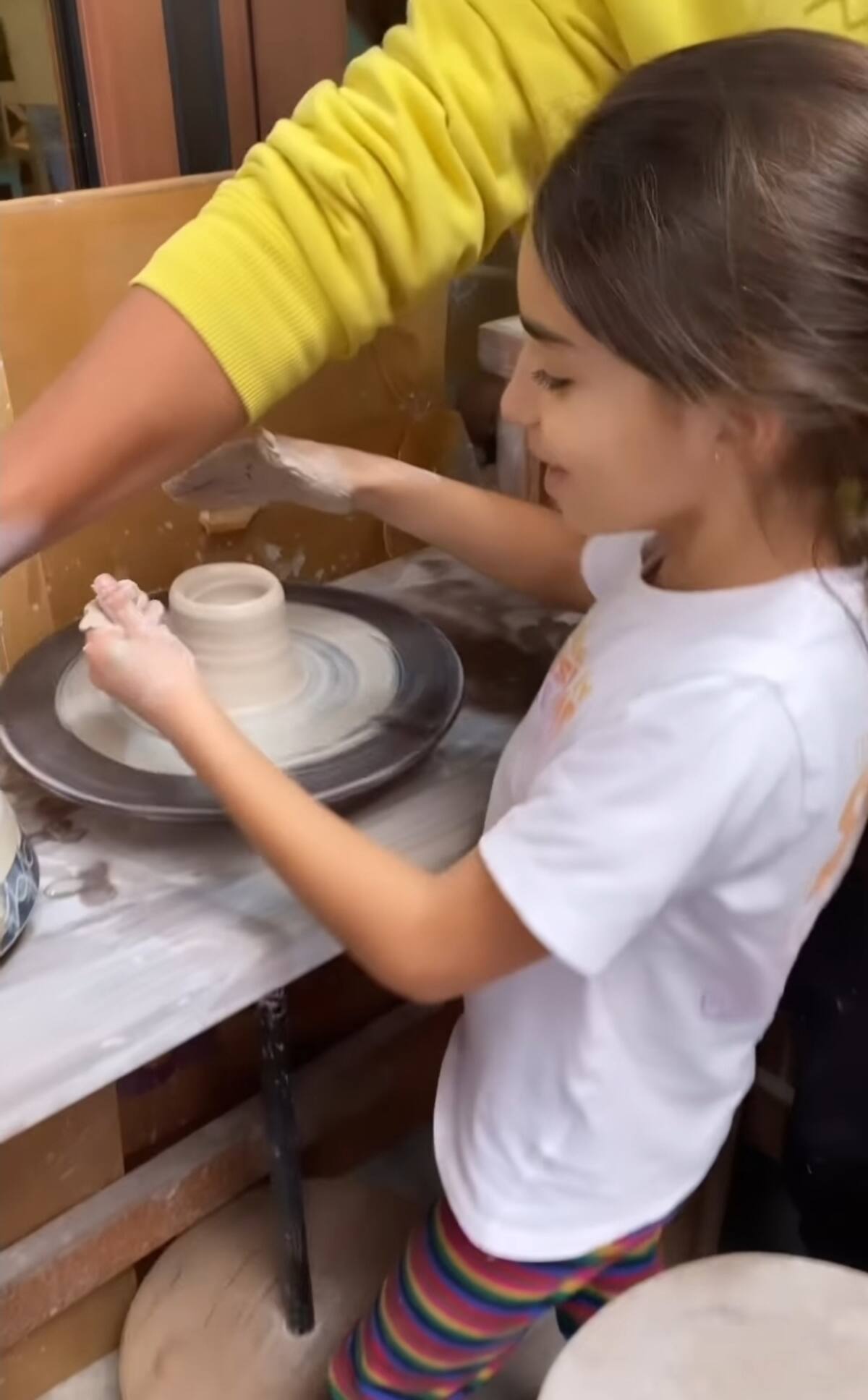 Aitana es la hija más pequeña del actor y productor mexicano Eugenio Derbez, y está aprovechando las vacaciones decembrinas para aprender una nueva habilidad. Junto con su hermana Aislinn, tomó un taller de alfarería en el que demostró lo bien que le salen las piezas de barro.