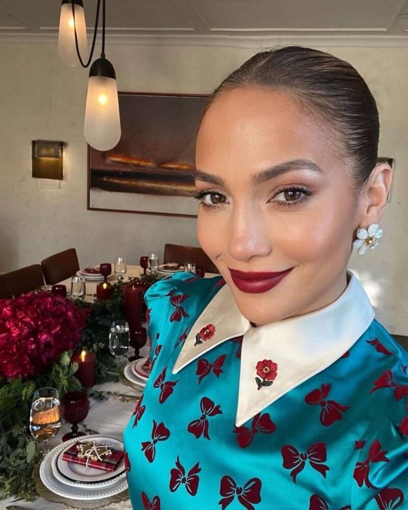En la última edición de su boletín "On The J.Lo", la artista compartió los detalles de su Nochebuena en familia y la lujosa fiesta que ella y su esposo organizaron en su casa de Hollywood, entre ellos la temática de la celebración se centró en su nueva canción, "Hummingbird", que JLo escribió para su último álbum, por lo que todas sus decoraciones y hasta su vestido tuvo el tema de colibrí.