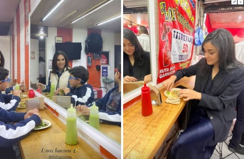 En una de las imágenes se puede ver que la primera parada que hizo la familia fue en un local de tacos, pues al parecer es uno de los platillos favoritos de la también modelo y no lo puede disfrutar igual en España.