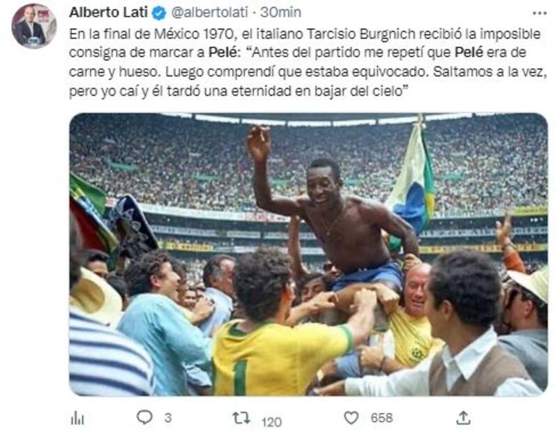 Pelé murió este jueves 29 de diciembre a los 82 años de edad, tras una larga lucha contra el cáncer de colon. La noticia de su muerte ha causado gran conmoción en el mundo entero, personalidades de diversos ámbitos, principalmente deportivo se han manifestado para darle el último adiós a quien fue considerado el mejor futbolista de la historia.
