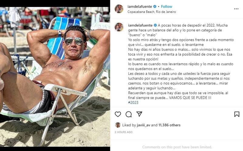 Por ello, este 2022 no será recordado como un año más por el rostro Cristián de la Fuente, quien se encuentra en Brasil esperando el 2023. En su cuenta de Instagram escribió: "A pocas horas de despedir el 2022. Mucha gente hace un balance del año y lo pone en categoría de 'bueno' o 'malo'. Yo solo miro atrás y tengo dos opciones frente a cada momento que viví… quedarme en el suelo, o levantarme".
