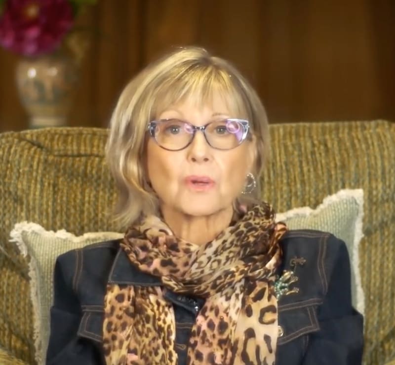 La actriz apareció en el corto clip con una chamarra de mezclilla, una pashmina de animal print y unos lentes de pasta con un aspecto relajado y saludable, sentada en un sillón verde.