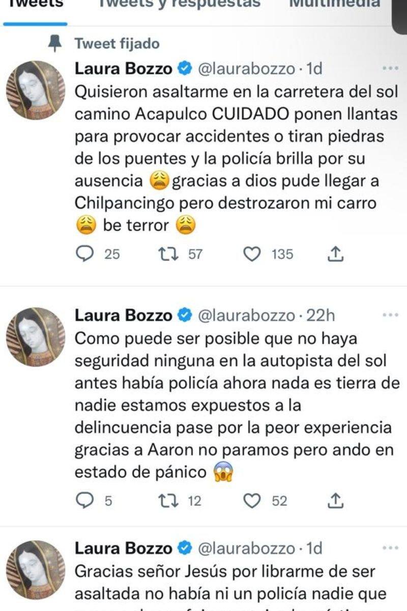 Laura Bozzo compartió por medio de sus redes sociales que este fin de semana la intentaron asaltar en la carretera que va rumbo a Acapulco, Guerrero. La conductora se trasladaba para pasar unos días en el lujoso apartamento que tiene en el puerto.