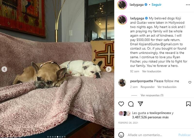 Recordemos que, tras el robo de las mascotas, Lady Gaga ofreció una recompensa de $500,000 dólares para tener de vuelta a Koji y Gustav, días más tarde una mujer entregó a los perros, pero fue acusada de complicidad en los hechos y por recibir bienes robados.