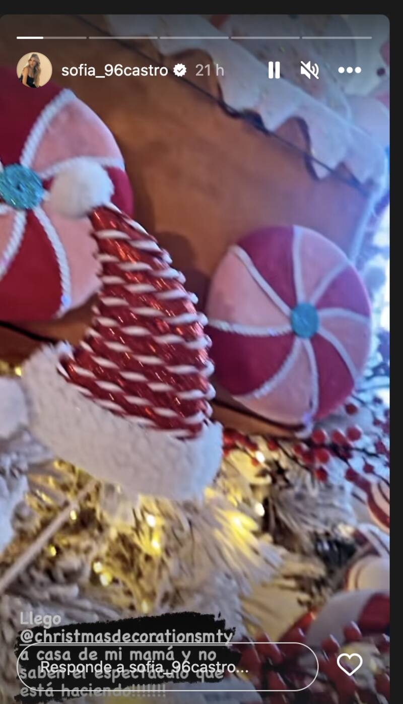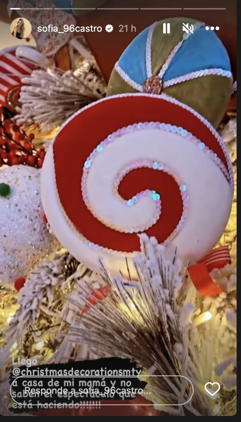Ahora, su hija Sofía Castro fue la encargada de mostrar la decoración navideña de su mamá: " Ya llegó @christmasdecorationmty a casa de mi. mamá y no saben el espectáculo que está haciendo", compartió la joven actriz en su cuenta de Instagram mientras mostraba las decoraciones del árbol.