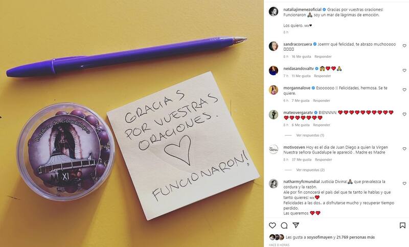 Por la tarde, Natalia Jiménez con una sencilla publicación agradeció a sus fans por el cariño mostrado en este duro proceso.