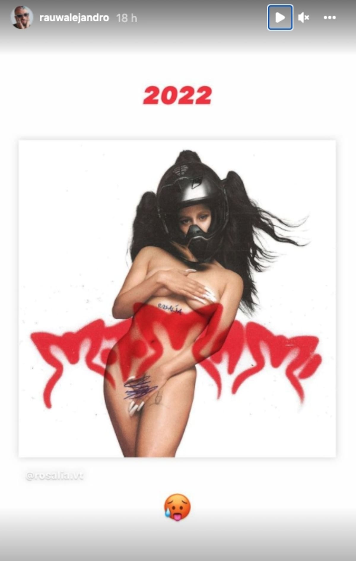 Uno de los primeros en compartir la portada de "Motomami" luego del anuncio de Rosalía fue Rauw Alejandro, quien la publicó en sus Instagram Stories, en donde solo colocó un 2022 y un emoji de "calor".