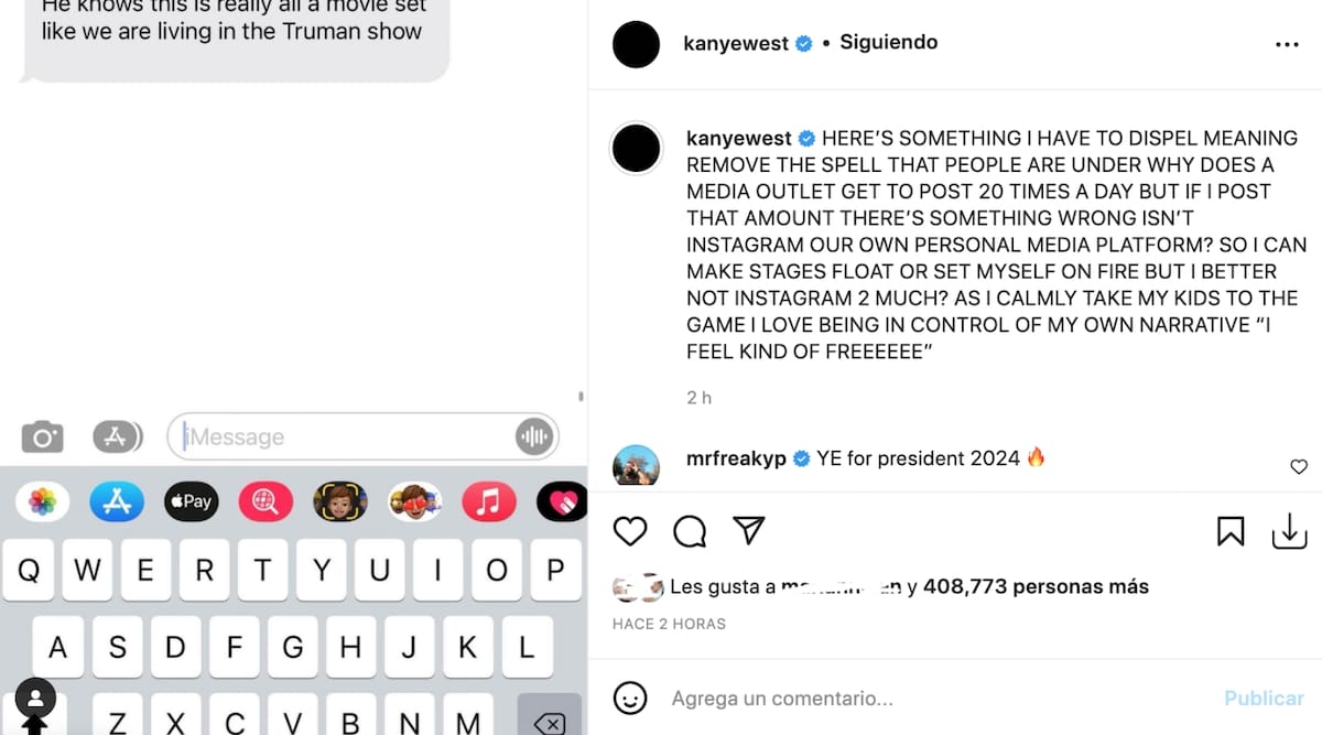 Además, en la misma descripción mencionó que estaba en camino al Super Bowl con sus dos hijos mayores, North y Saint: "Mientras con calma llevo a mis hijos al juego, me encanta estar en control de mi propia narrativa. ¡Me siento un poco libre!".