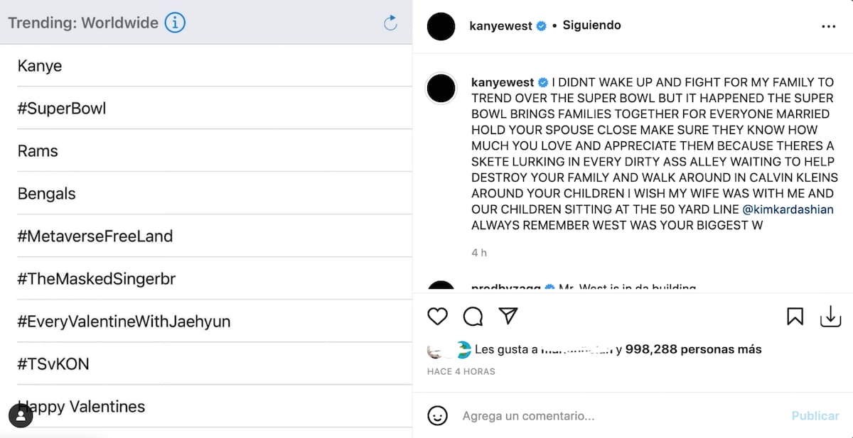 En una de sus publicaciones más recientes, el rapero publicó una captura de pantalla demostrando que en el día del Super Bowl amaneció siendo tendencia, y al respecto escribió: