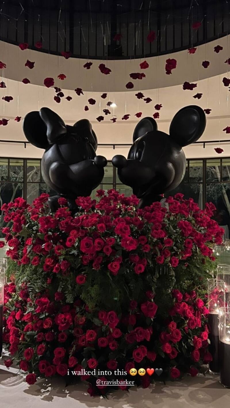 Para conmemorar el día de los enamorados, el baterista de "Blink-182", le regaló un impresionante arreglo de rosas, donde el gran protagonista era una Minnie y un Mikey Mouse gigante rodeados de flores.