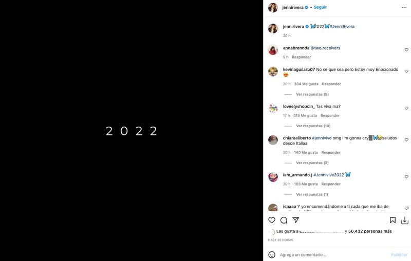 La publicación en cuestión consta únicamente de un cuadro negro con un "2022" en el centro, el cual únicamente fue acompañado con una pequeña descripción: "2022 #JenniRivera", junto con dos mariposas (el símbolo que la definía).