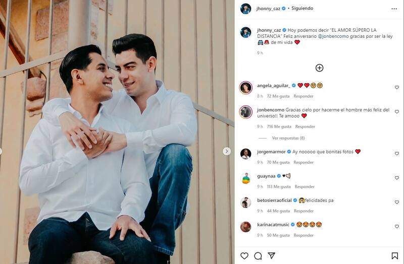 "Hoy podemos decir "EL AMOR SÚPERO LA DISTANCIA" Feliz aniversario @jonbencomo gracias por ser la ley de mi vida", escribió el hermano de Jhonny Caz al pie de una divertida sesión de fotos.