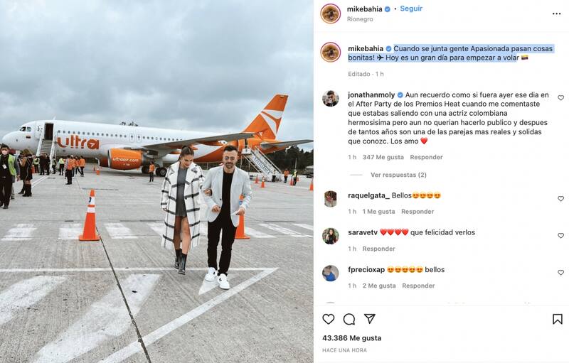 Una imagen parecida publicó Mike Bahía en la que escribió "Cuando se junta gente apasionada pasan cosas bonitas! Hoy es un gran día para empezar a volar", afirmó.