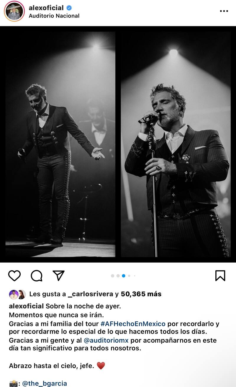 El pasado jueves 17 de febrero, el intérprete de “Me dediqué a perderte” se presentó en el Auditorio Nacional de la Ciudad de México, donde dio un emotivo concierto dedicado a su fallecido padre. Alejandro Fernández compartió a través de sus redes sociales la experiencia de esa noche.