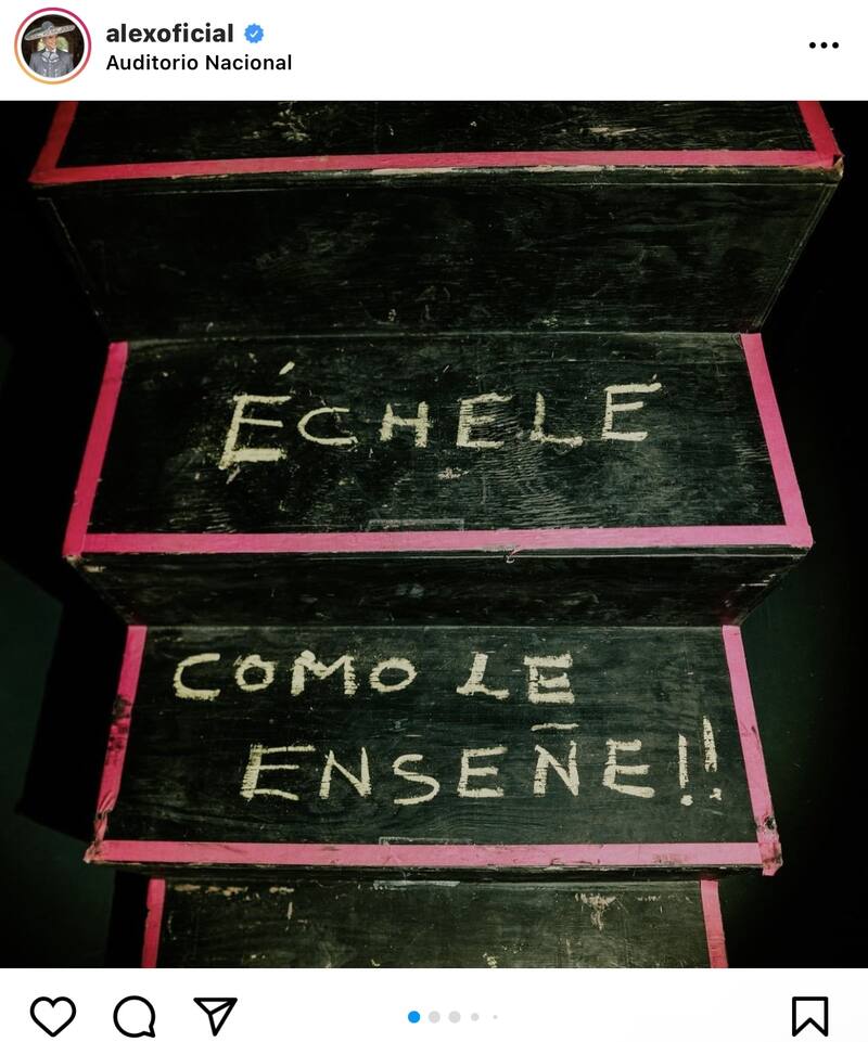 "Échele como le enseñé", se lee en las escaleras que lo llevarían al escenario, dicho mensaje sería de parte de Vicente Fernández. La publicación continúa con una serie de fotografías y videos en las que aparece Alejandro Fernández dando el concierto.